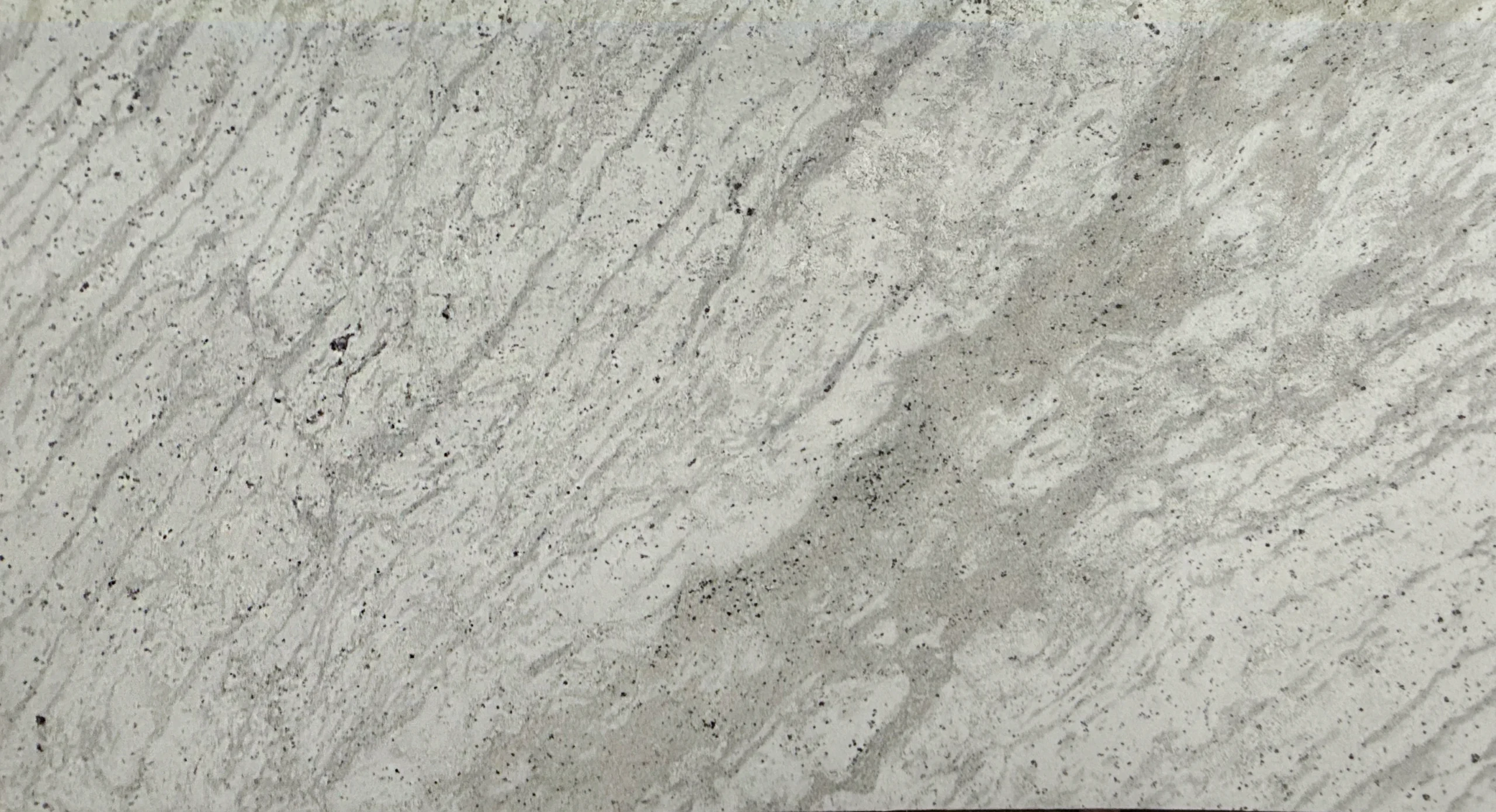 This granite features a soft blend of light gray and warm white tones with natural flowing movement and scattered mineral speckles. The organic pattern creates depth and texture, bringing a balanced mix of character and subtle elegance to any space.