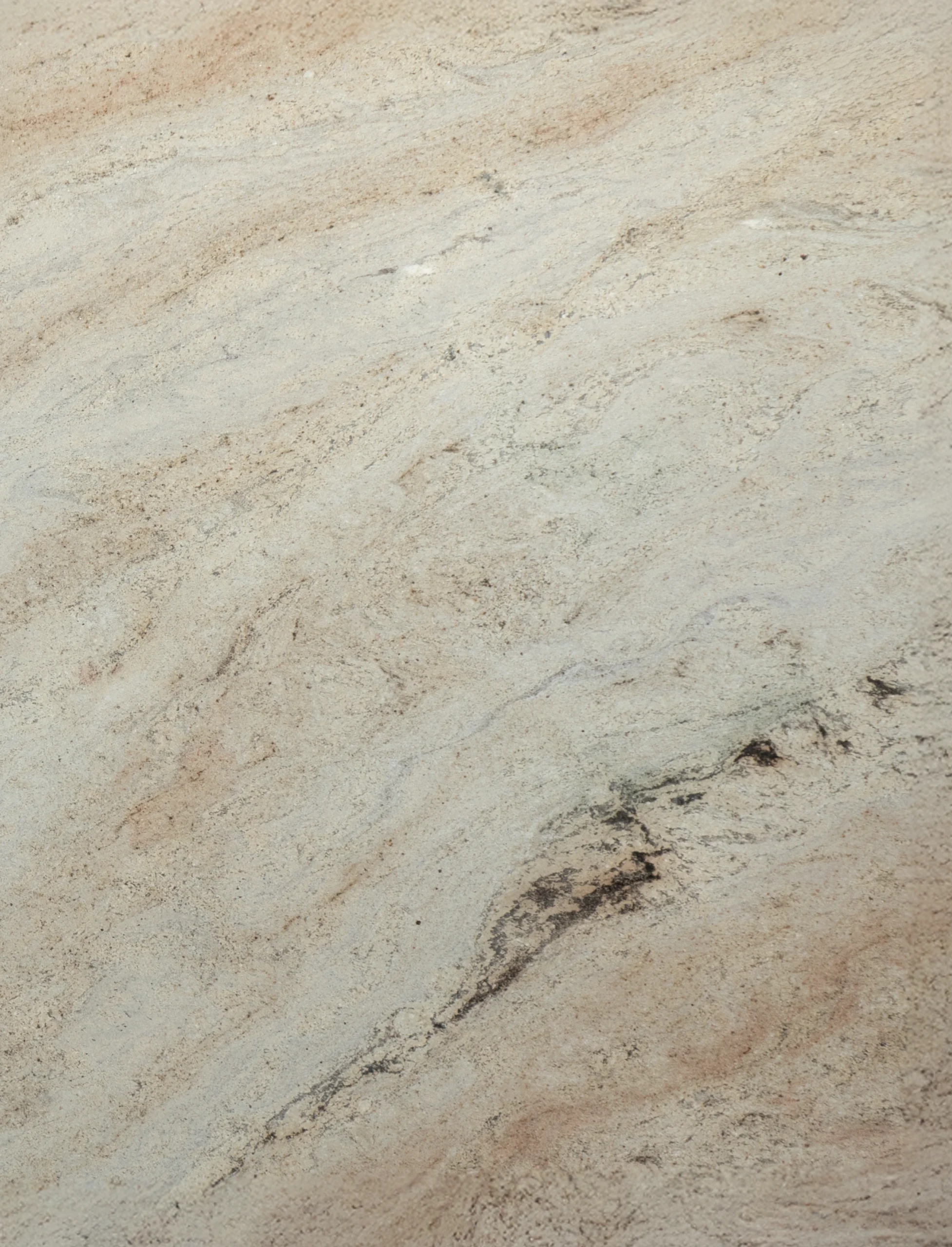 This granite features a warm cream background with soft brown and taupe flowing patterns. Its natural movement and earthy tones create a timeless, inviting look perfect for kitchens, bathrooms, and elegant interior designs.