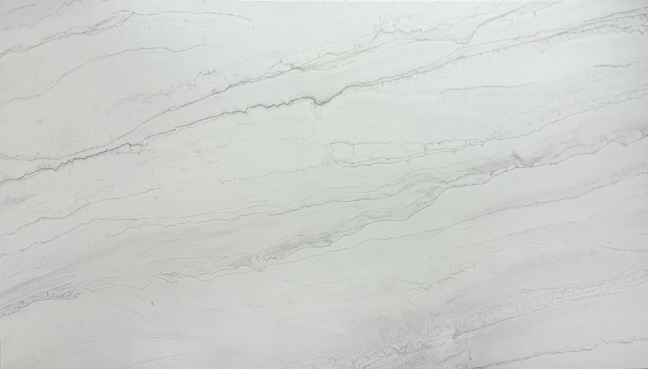 This quartz features a soft matte finish with elegant, flowing gray veining across a clean white background. The subtle movement adds depth and texture while maintaining a clean, modern look that enhances any space with understated sophistication.