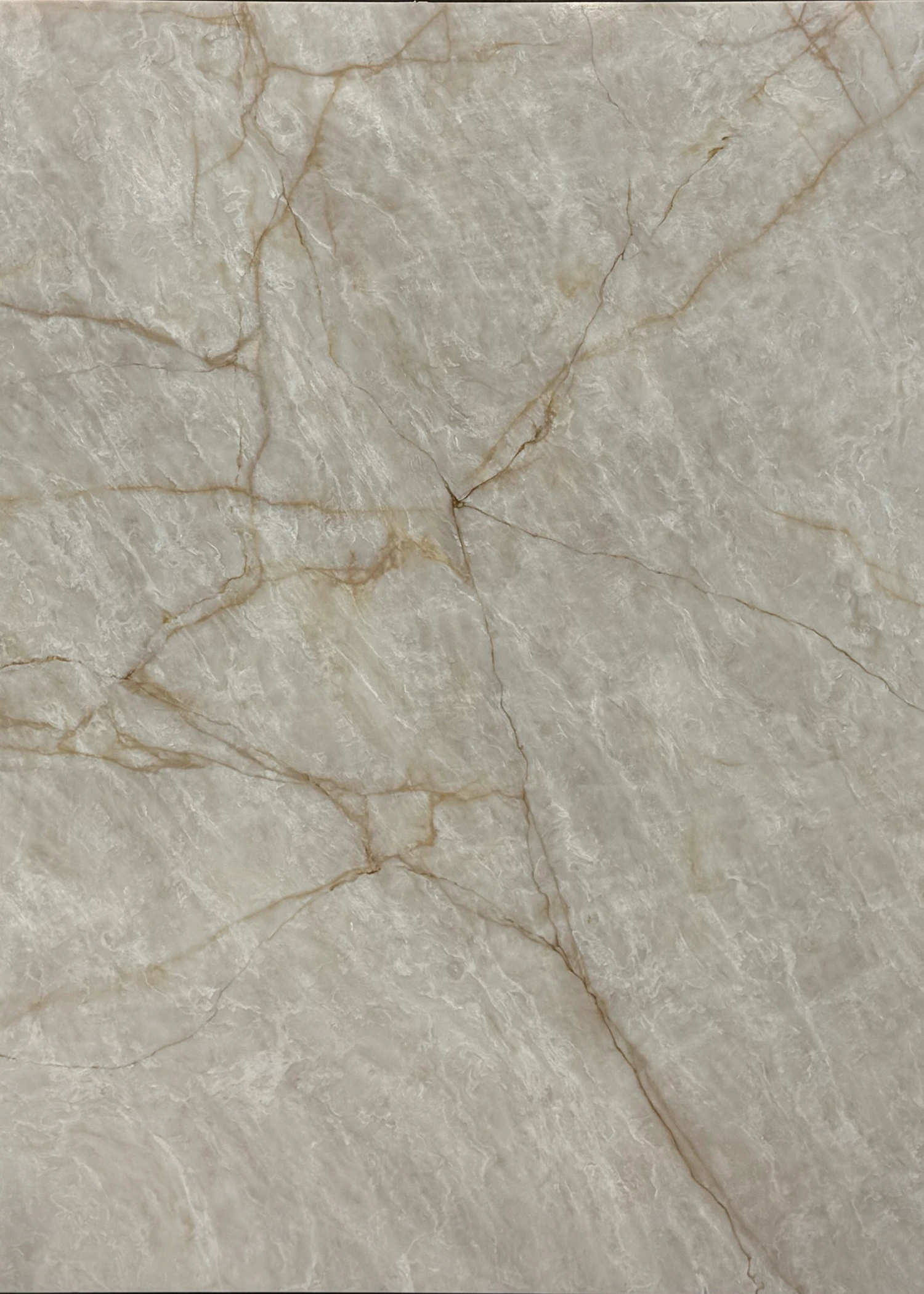 Jupiter Cristallo is a premium translucent quartz slab featuring a warm beige background with delicate gold veining and subtle crystalline depth. Designed to be backlit, this surface creates a striking glow effect that elevates countertops, bar tops, feature walls, and statement installations. Combining the durability and low maintenance of quartz with a luminous, high-end aesthetic, Jupiter Cristallo is ideal for projects that demand both performance and visual impact.