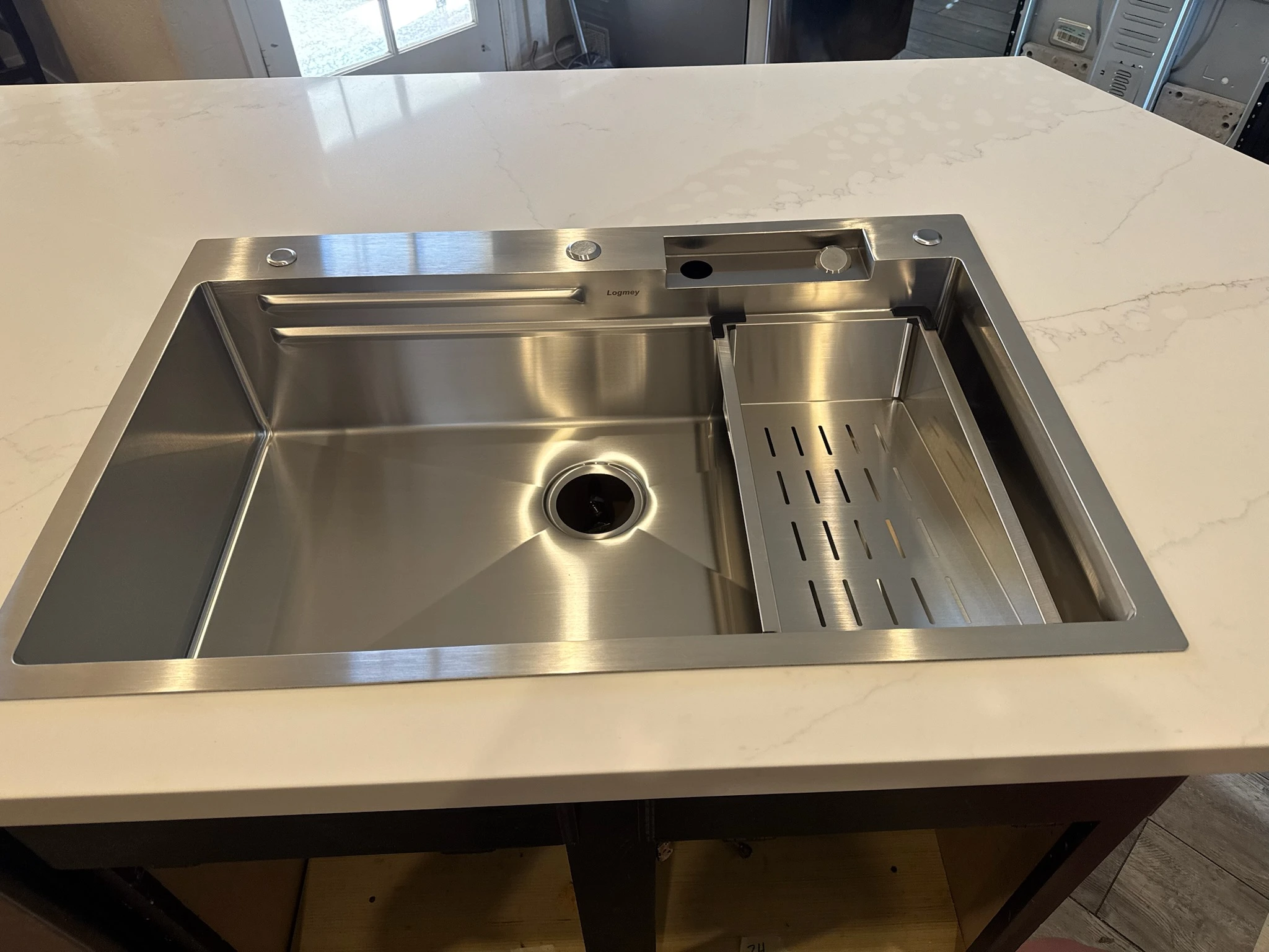 This quartz features a luminous white base interlaced with soft golden and taupe veining, evoking a sense of warmth and elegance. The delicate marbling flows organically across the surface, offering a luxurious yet subtle design perfect for both classic and contemporary interiors.