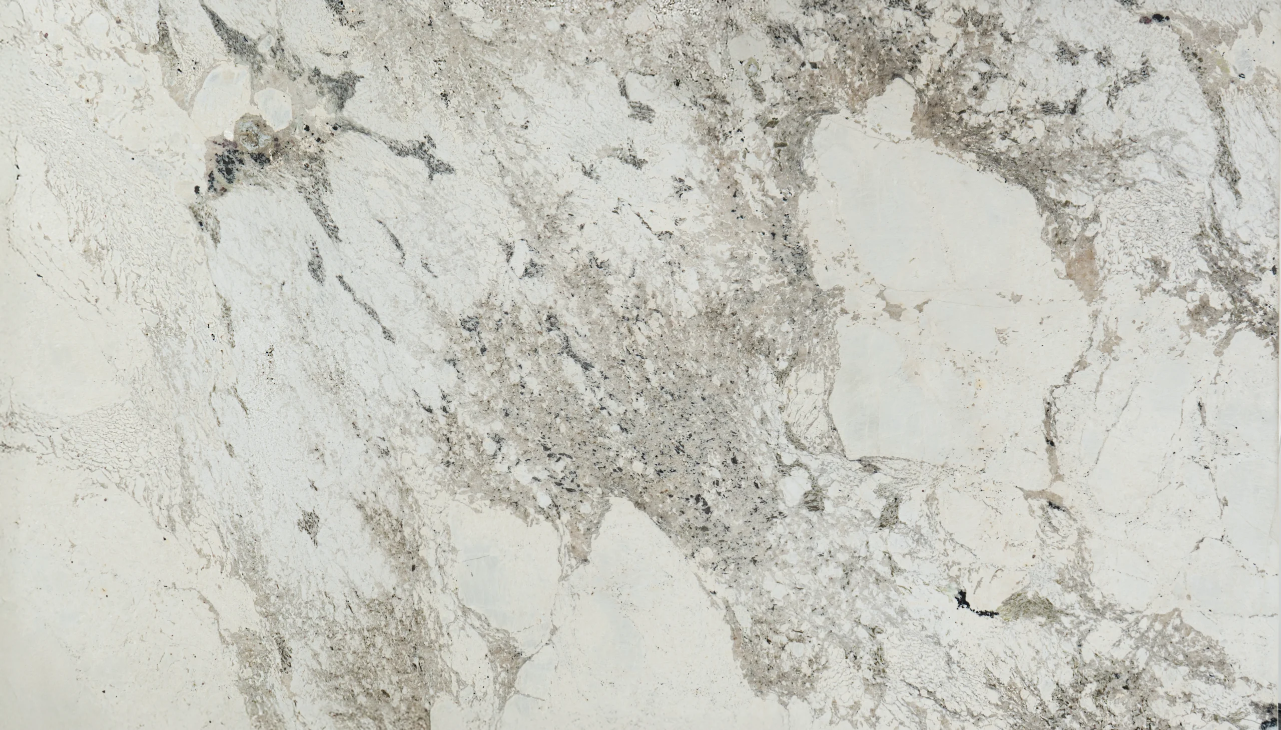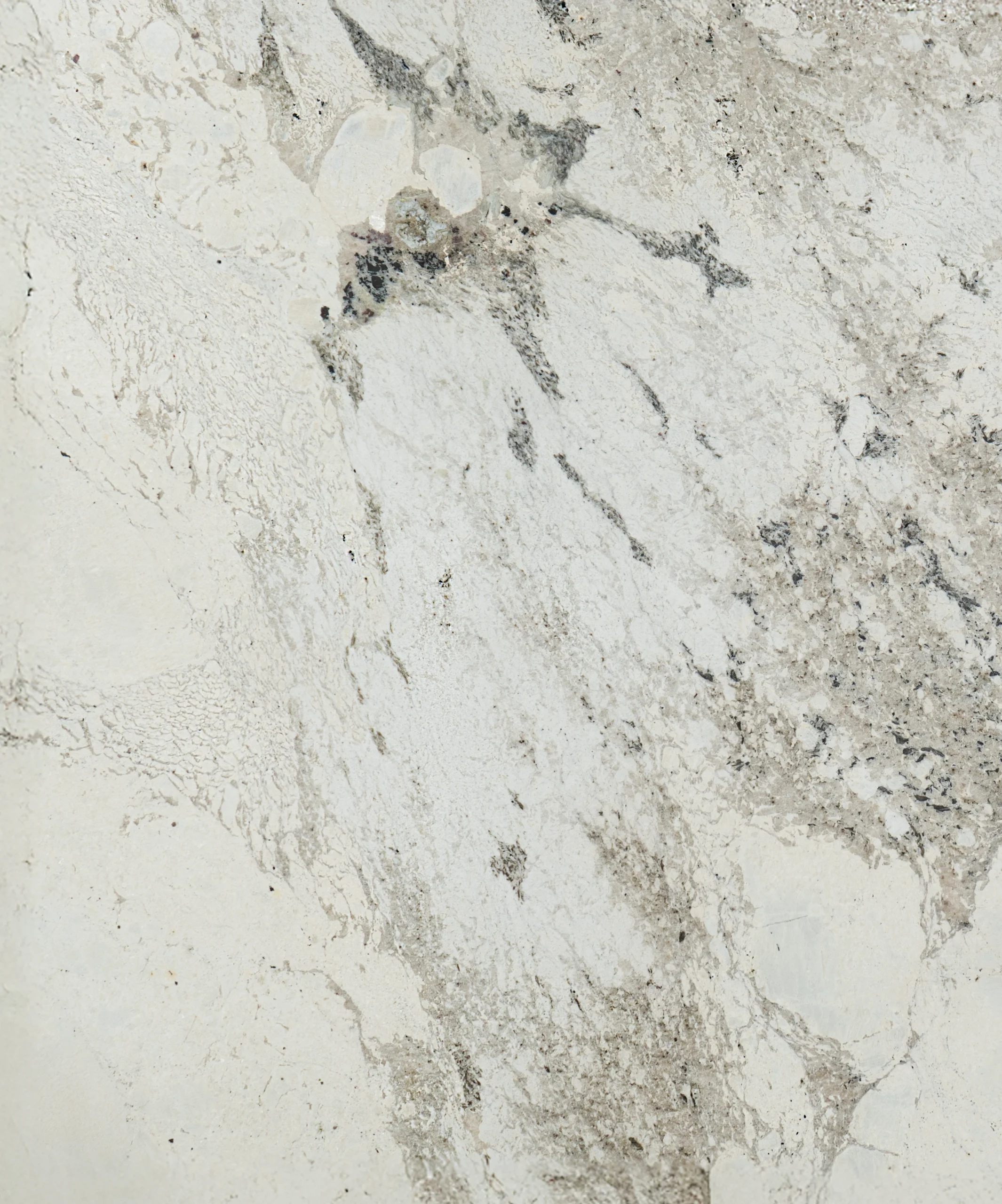 This granite features a bright white base with sweeping gray minerals and soft earthy tones, creating a dynamic, natural look ideal for elegant and modern spaces.