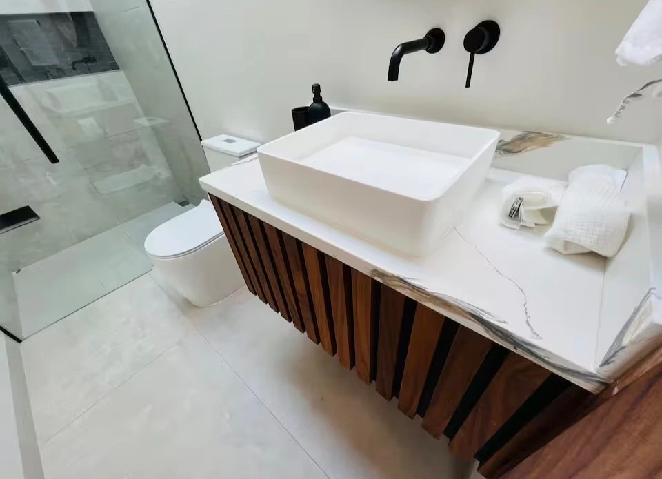 This quartz features a warm cream to light beige base with delicate gray veining accented by hints of gold or brown, creating a subtle crackle effect and an elegant, textured appearance with low to medium contrast.