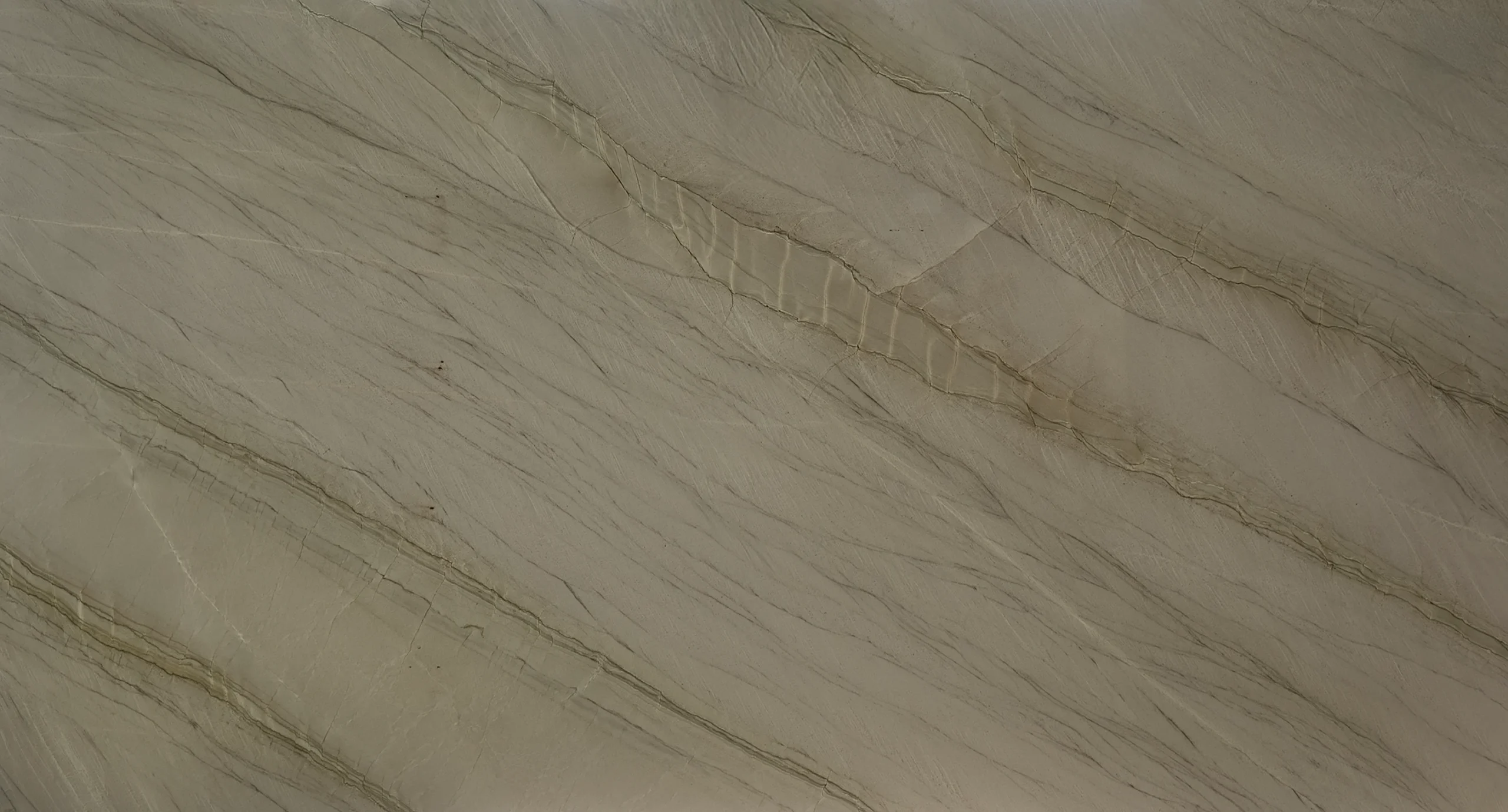 This quartzite features a warm cream background with soft taupe and light brown veining, creating gentle movement and natural depth. Its layered pattern and earthy tones bring a refined, organic elegance to both modern and transitional spaces.